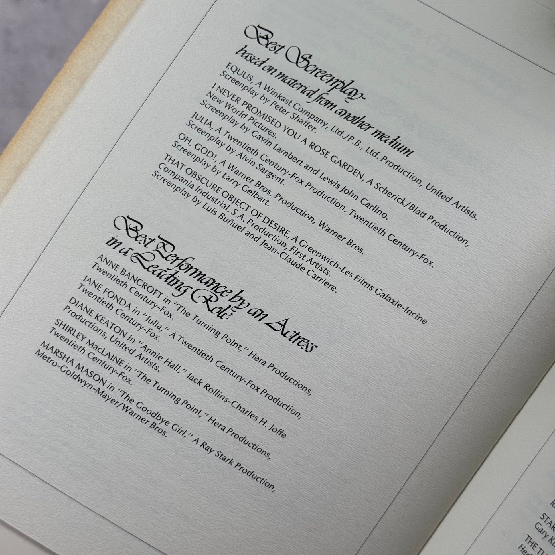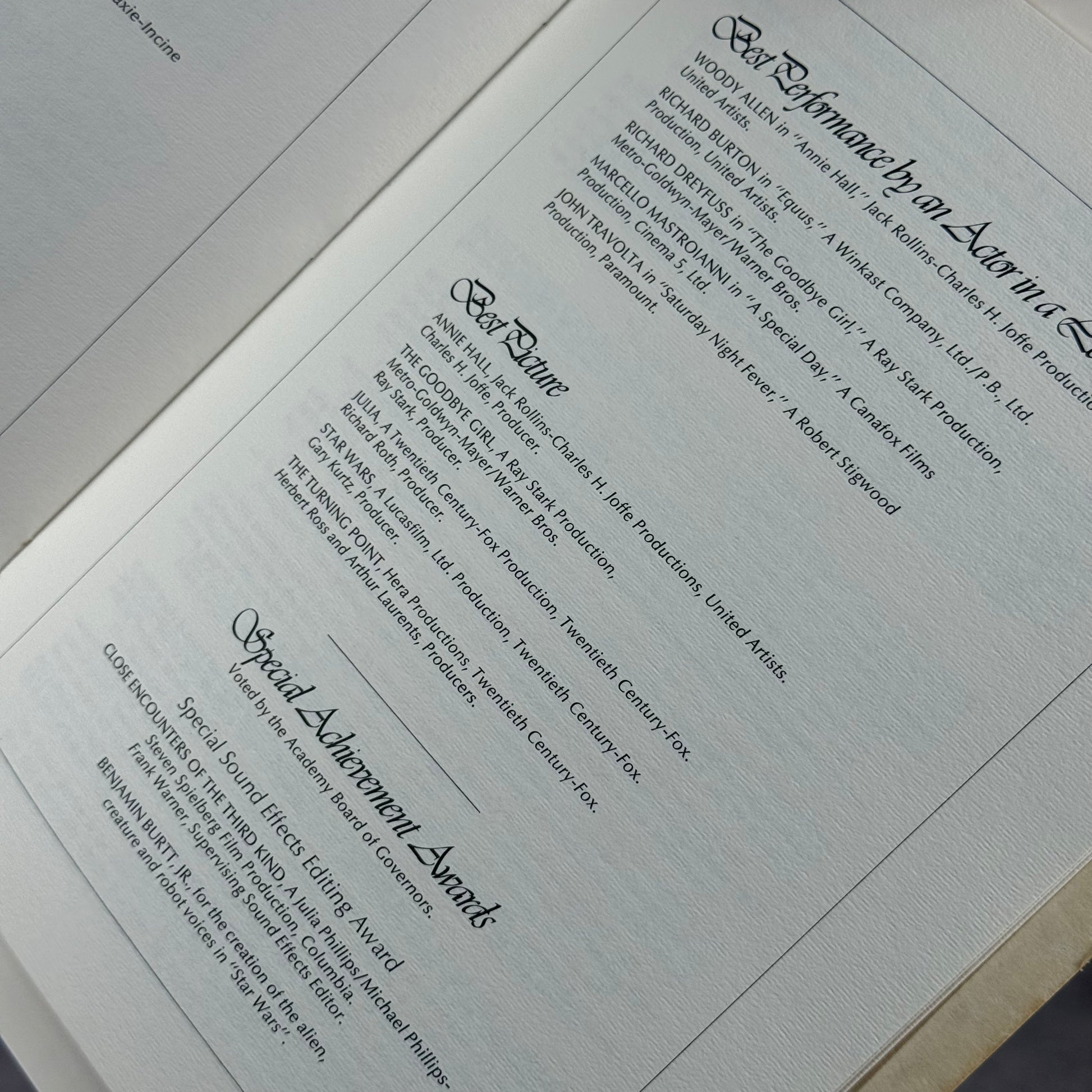 Folleto real 50 Aniversario de los Oscares en 1978, entregado solo a los asistentes presenciales del evento el el dolby theater en los Angeles; con nominaciones como George Lucas por Star Wars, Woody Allen como mejor actor junto con John Travolta por Saturday Night Fever