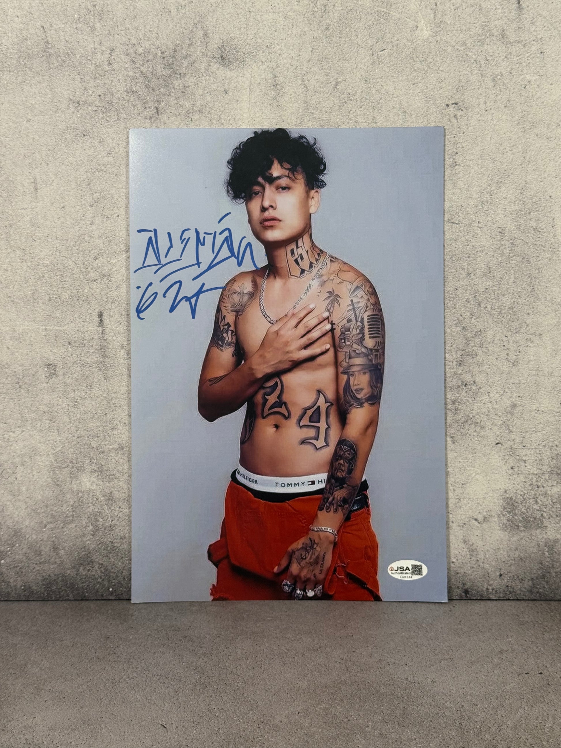 Fotografía autografiada por el rapero Alemán, uno de los exponentes más influyentes del hip-hop mexicano. Certificada JSA.
