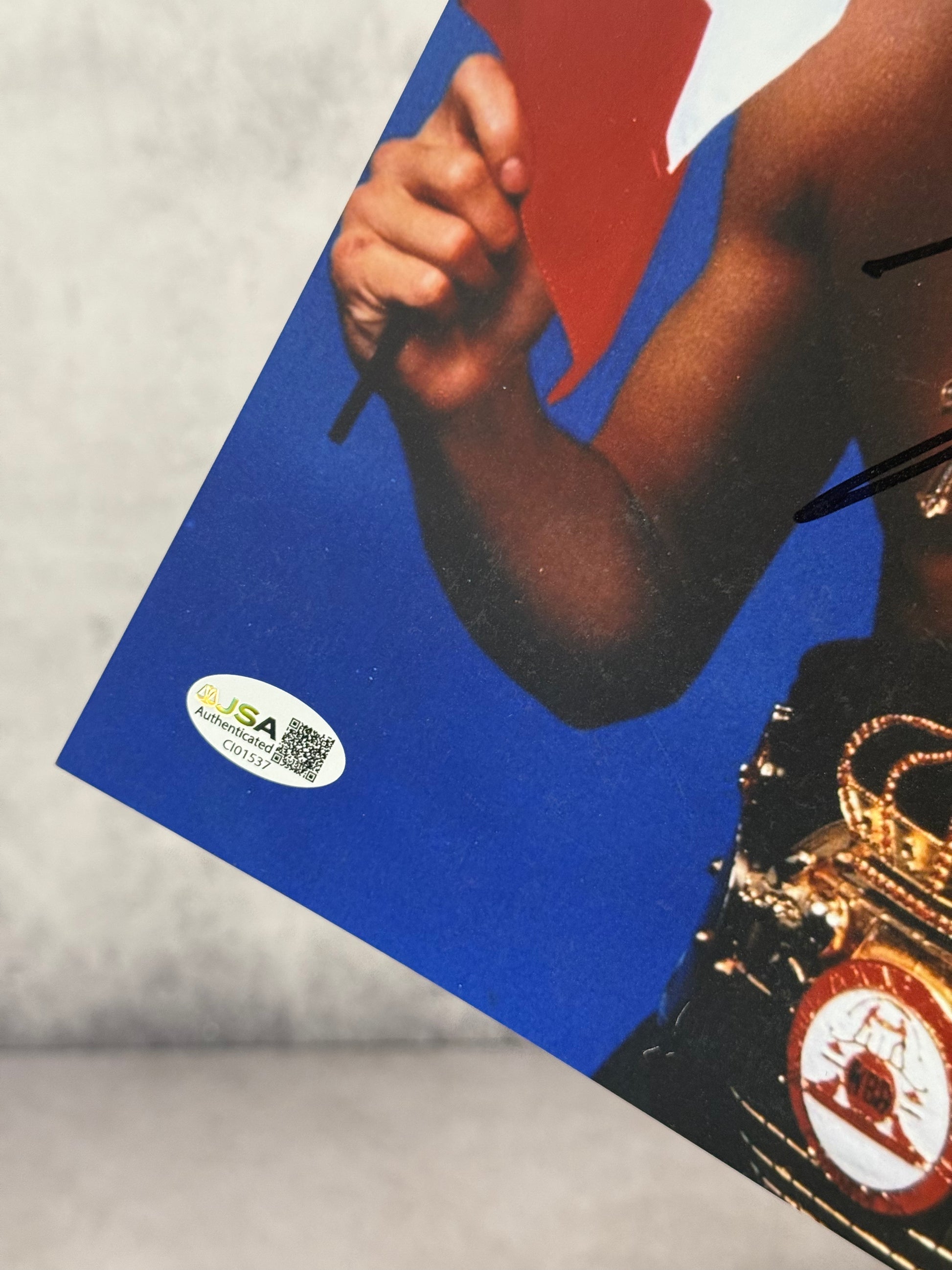 Foto oficial autografiada por Julio César Chávez, leyenda del boxeo mexicano. Certificada JSA. Memorabilia histórica.