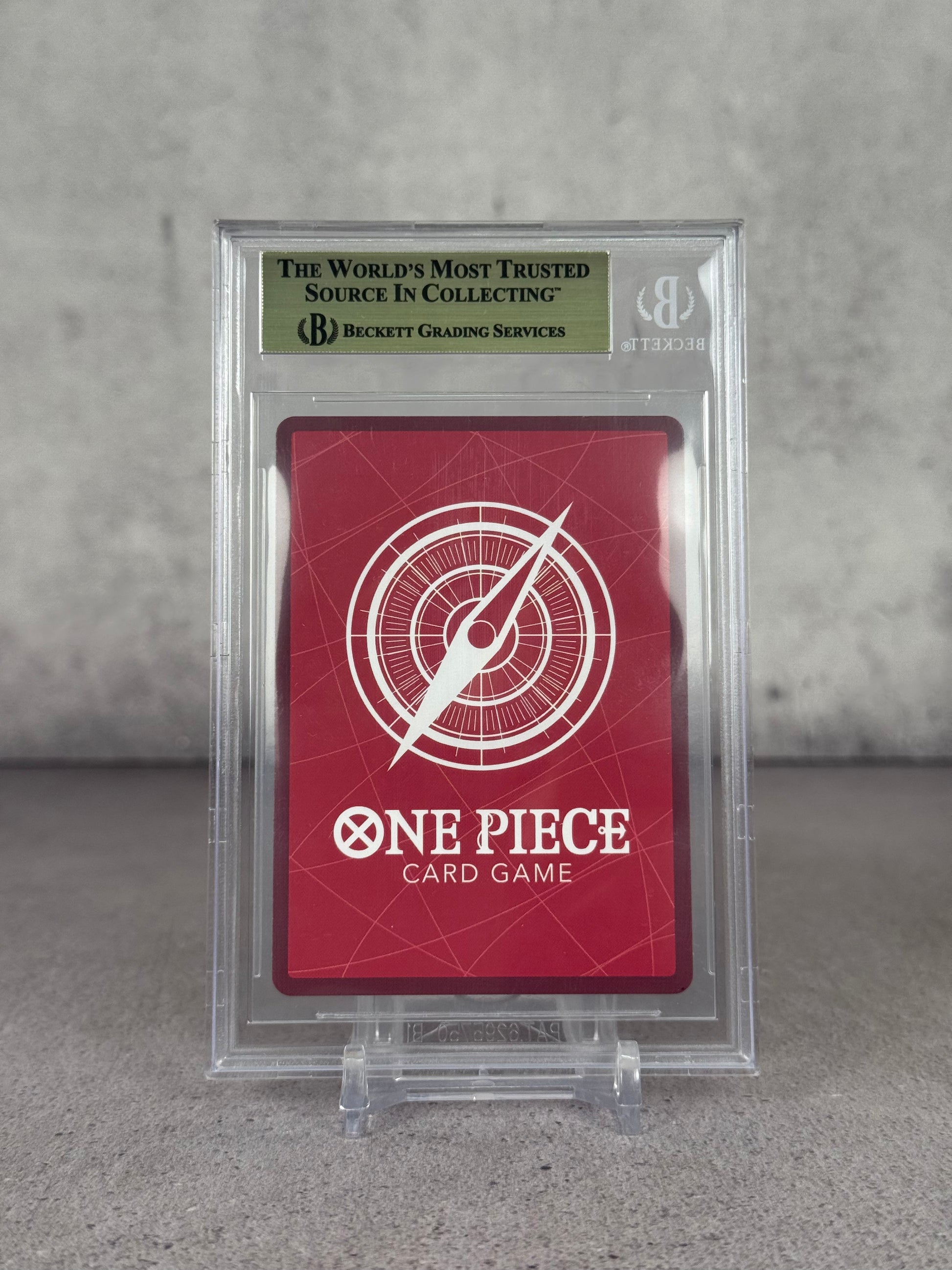Tarjeta de Monkey D. Luffy del set Awakening of the New Era OP-05. Calificación Beckett BAS 10 Pristine, una de las más altas posibles. Pieza élite para coleccionistas de One Piece TCG.