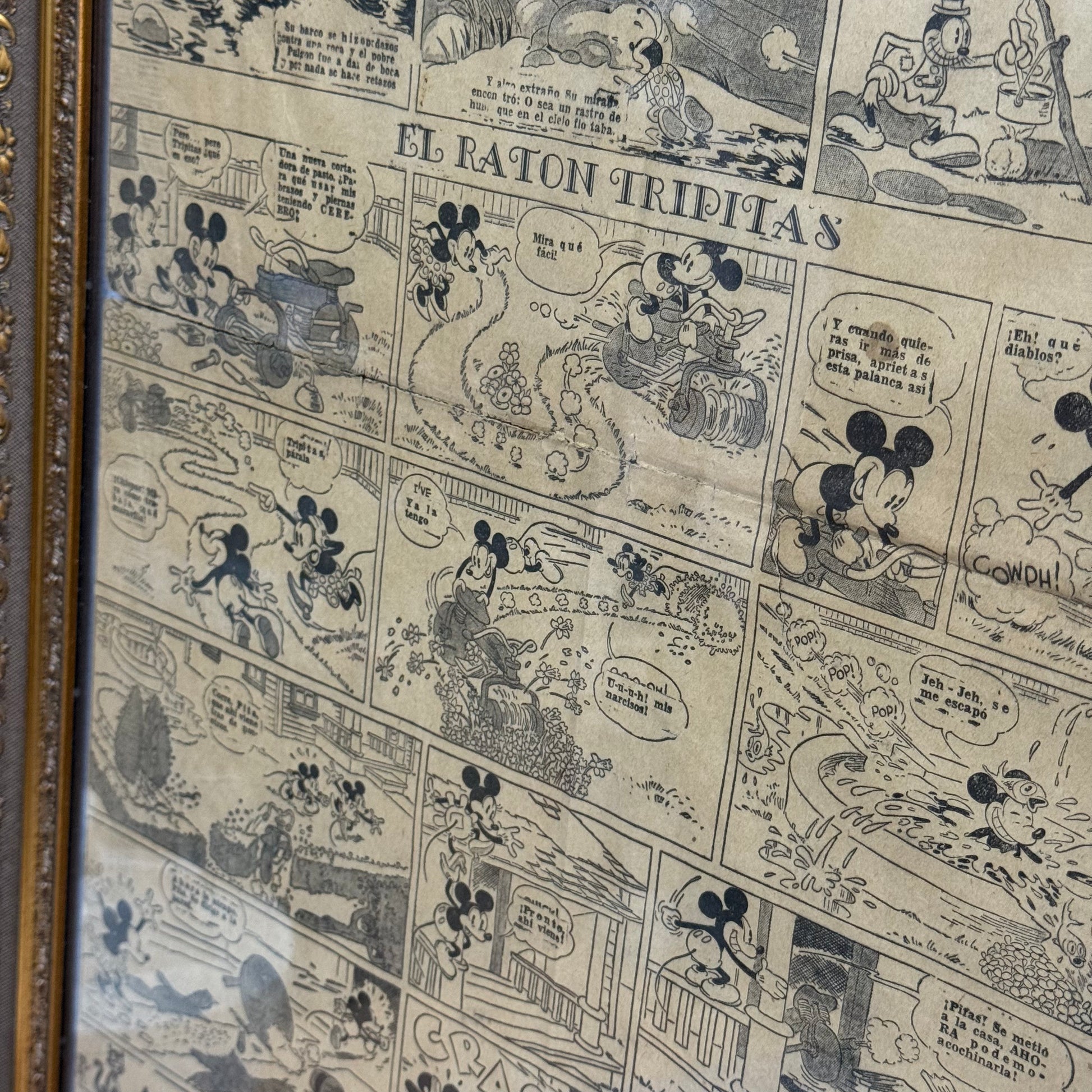 Cuadro enmarcado premium doble cristal de una de las primeras tiras comicas en México de "Mickey Mouse" en su momento conocido como "Ratón Tripitas"