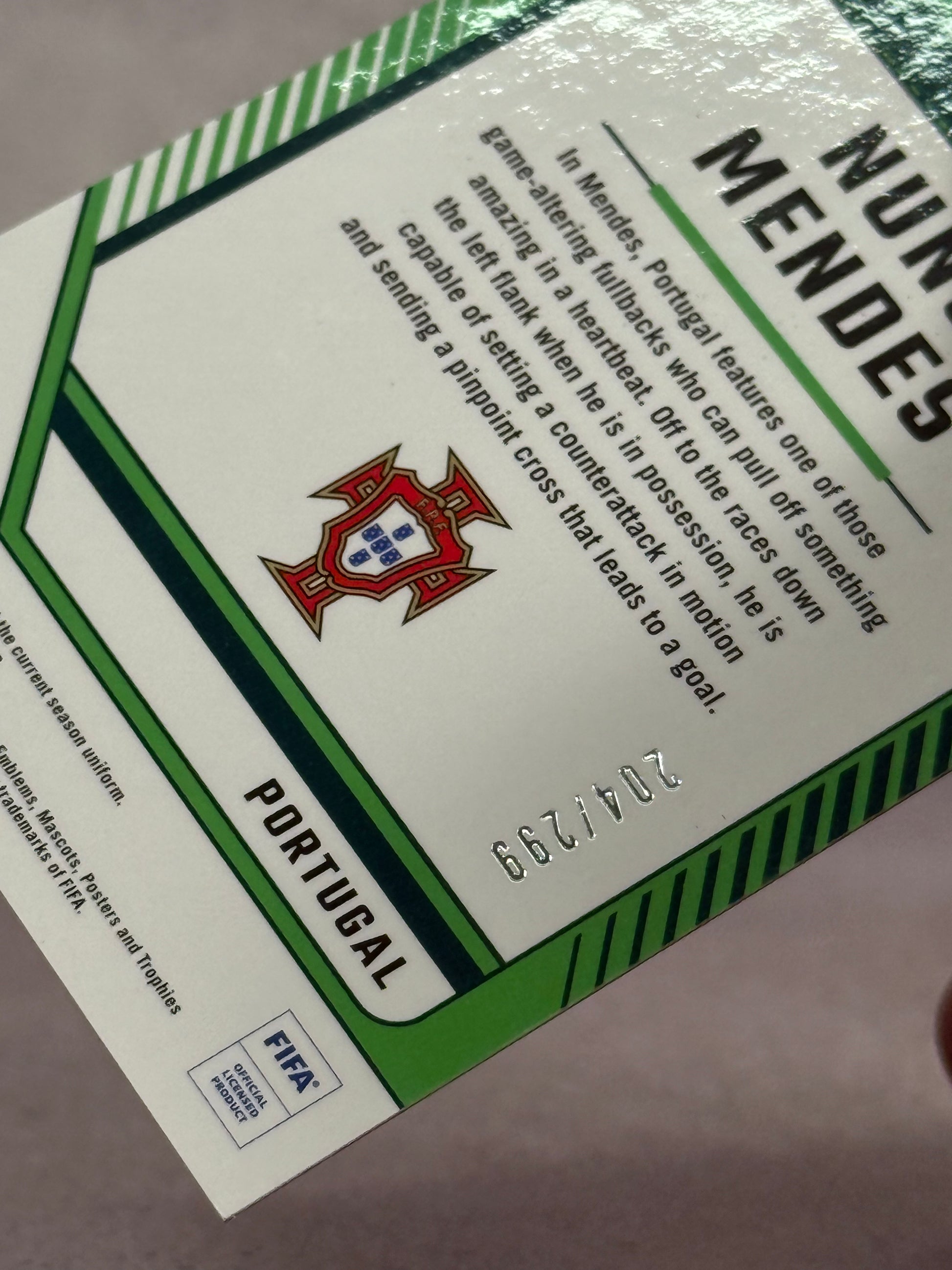 Tarjeta Donruss Optic Nuno Mendes Rookie 204/299 numerada